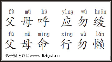 父母呼唤我们,要马上答应,不可迟缓。父母叫我们做事情要马上行动,不可懒惰。